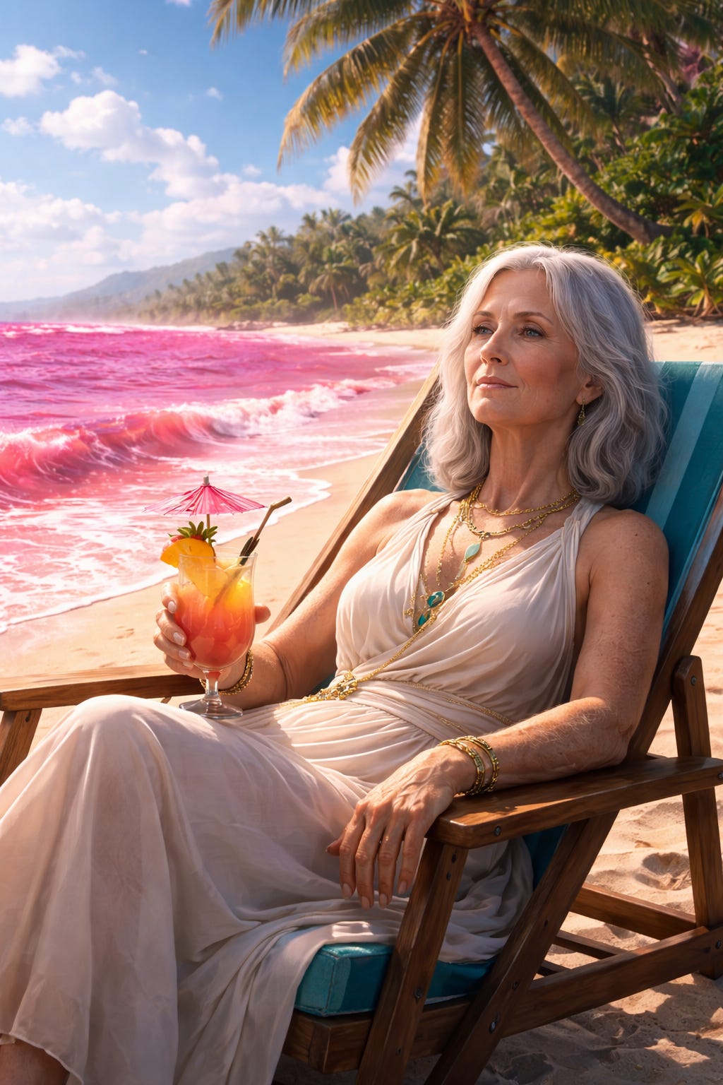 “What the hell was I thinking? Immortality. Pah.” He spit in the pink sand, watched the bubbles of his spittle leech away in the indigo water, blending into the synthetic color, the manufactured bacteria eating it away. The bacteria destroyed all imperfectly balanced organic material, and I could not bear the thought of stepping into that water – would I just melt away like Margaret Hamill in The Wizard of Oz?